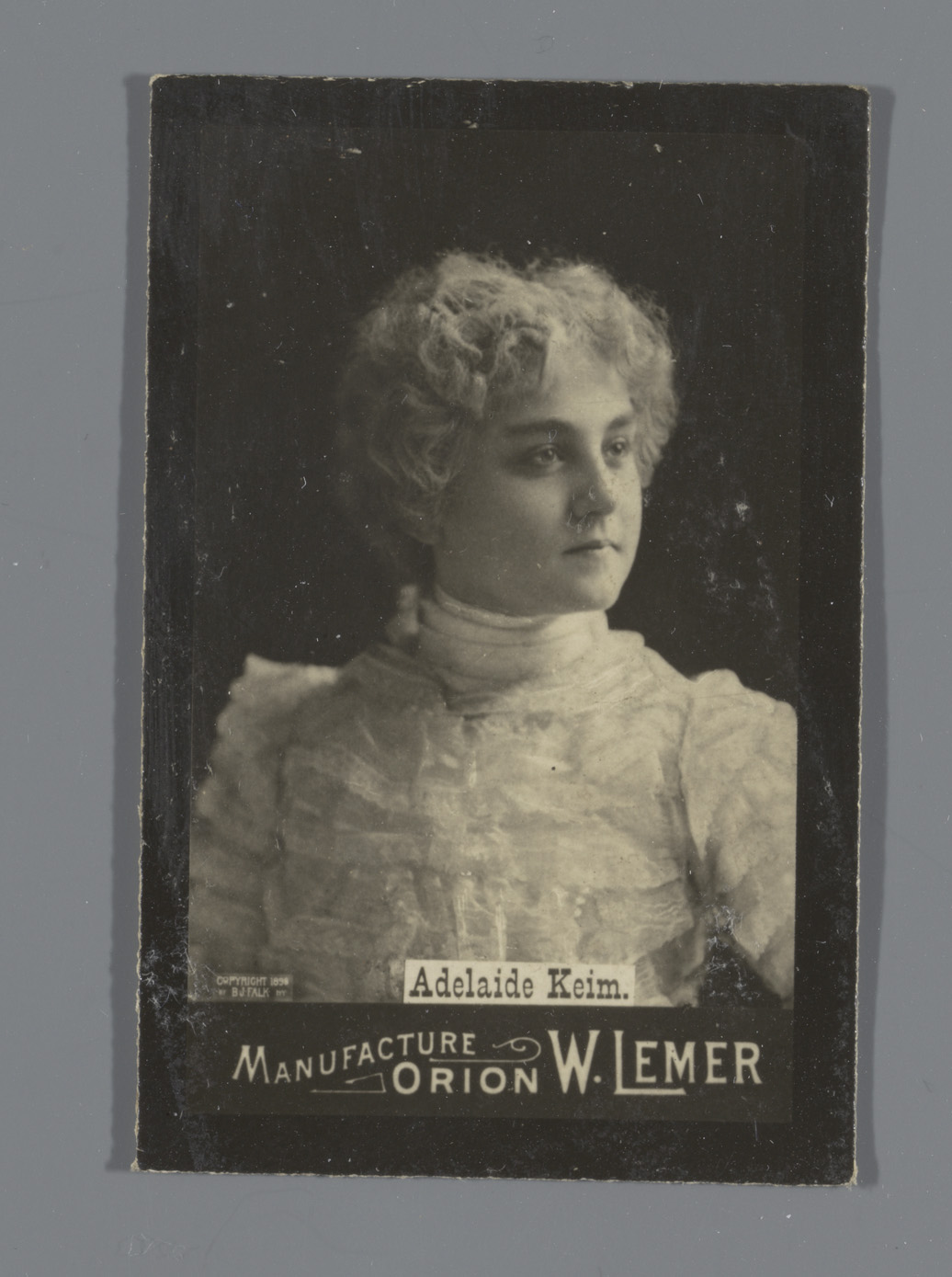 Portret van Adelaide Keim, reclame voor Orion W. Lemer
