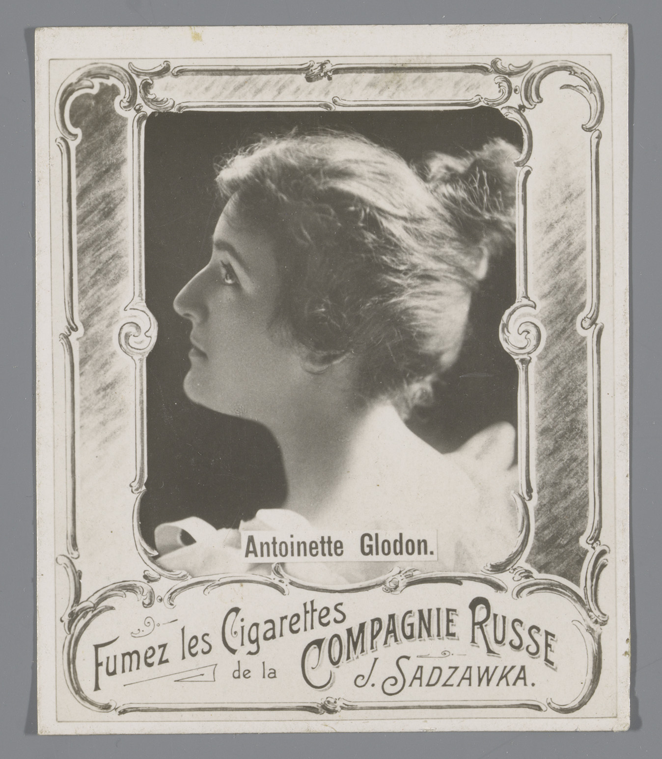 Portret van Antoinette Glodon, reclame voor Cigarett...
