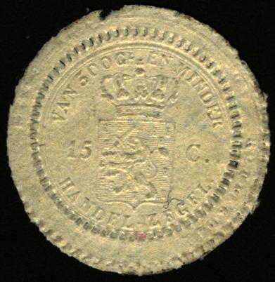 Handelszegel uit 1842 met een waarde van fl. 0,15.