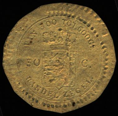 Handelszegel uit 1842 met een waarde van fl. 0,50.
