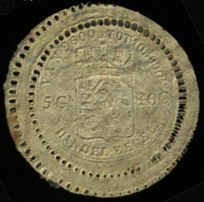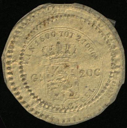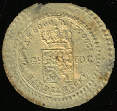 Handelszegel uit 1829 met een waarde van fl. 5,40.