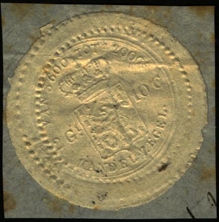Handelszegel uit 1829 met een waarde van fl. 2,10.