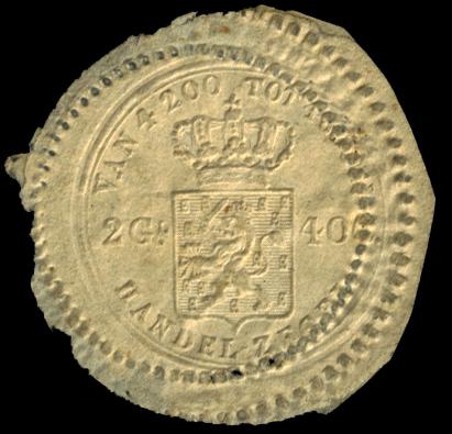 Handelszegel uit 1829 met een waarde van fl. 2,40.