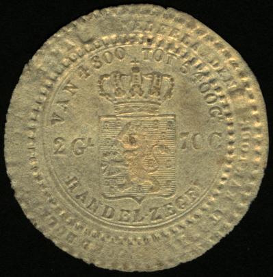 Handelszegel uit 1829 met een waarde vanfl. 2,70.