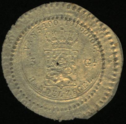 Handelszegel uit 1829 met een waarde van fl. 3,00.