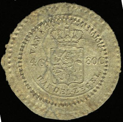 Handelszegel uit 1829 met een waarde van fl. 4,80.