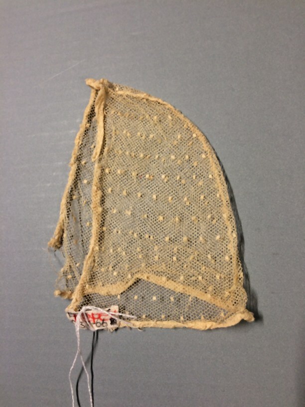 Floddermuts of mutsekant, strook genopte tule, onder...