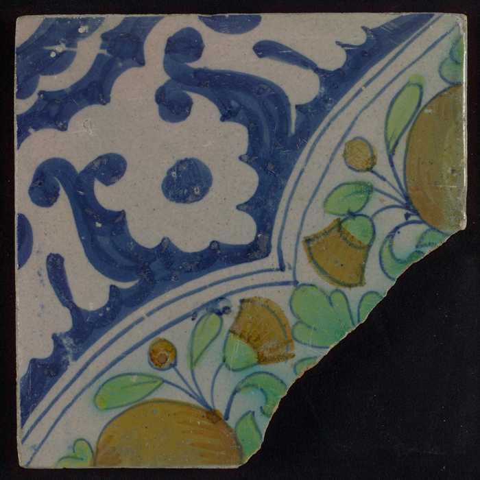 Ornamenttegel, diagonaal ornament in vierpas met bog...