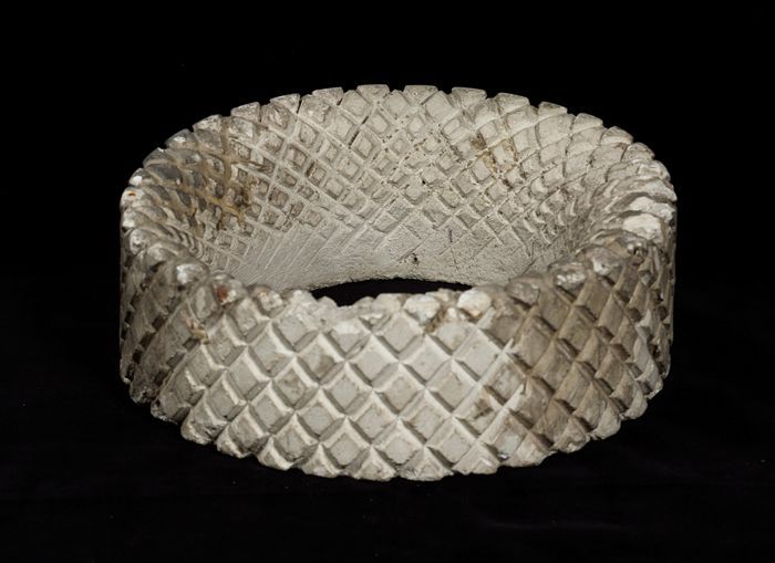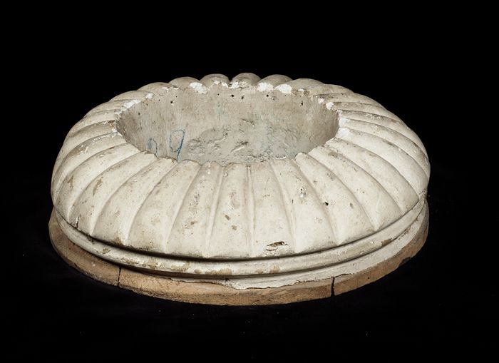 Hoedenmal van gips, rand met ribbelstructuur, onderg...