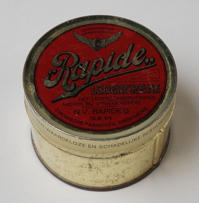 Klein rond blik met los deksel, "Rapide, ledercrème"...