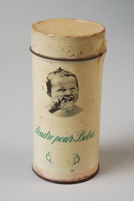 Cilindrisch blauw en oranje blik "... Drogistenwas ..."