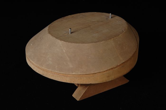 Hoedenmal van hout, onder- en bovendeel, onderzijde ...