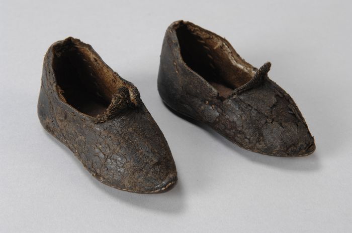 Zwarte leren babyschoentjes met spitse neus en punti...