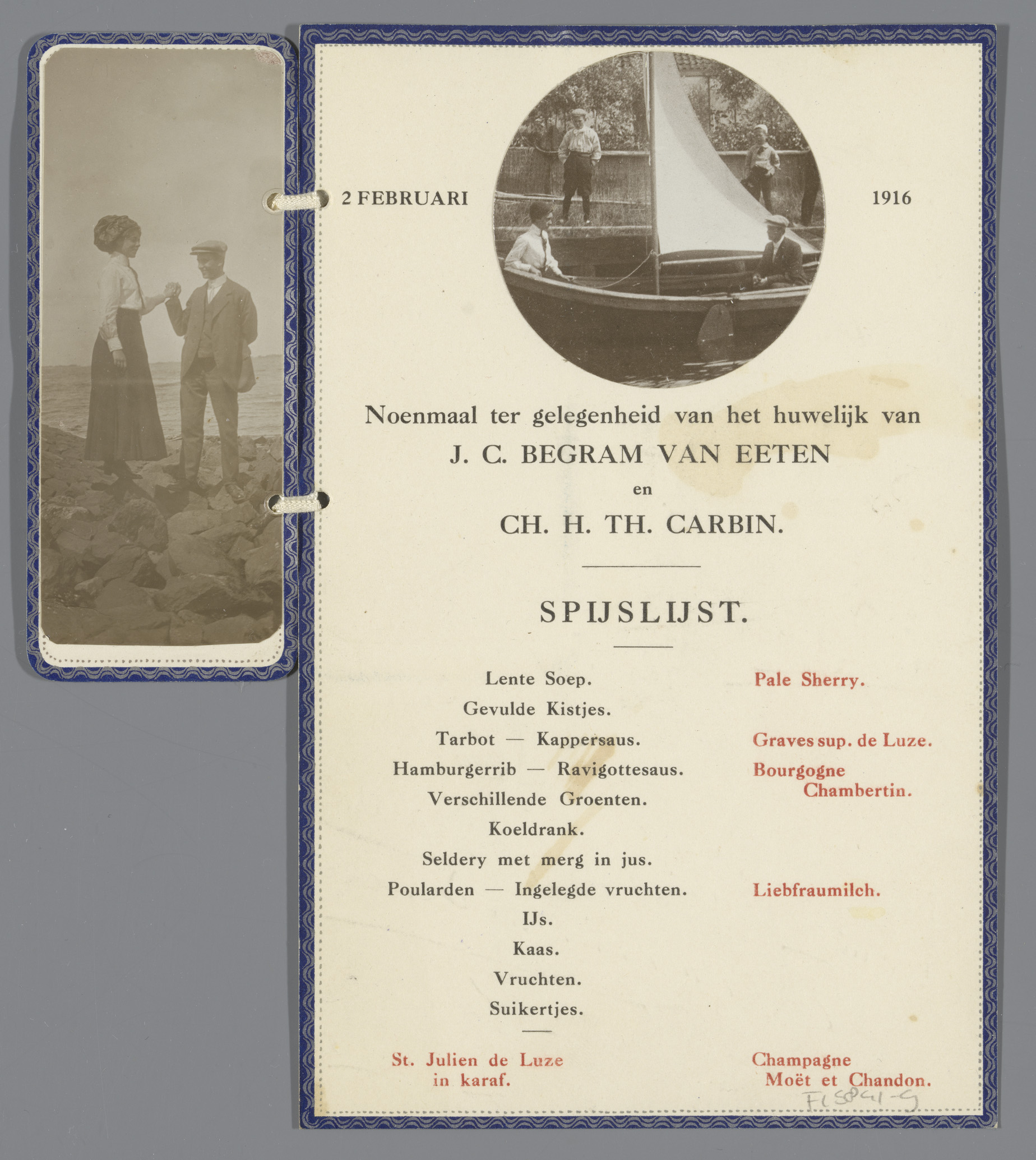 Menukaart van de bruidegom voor het diner ter ere va...