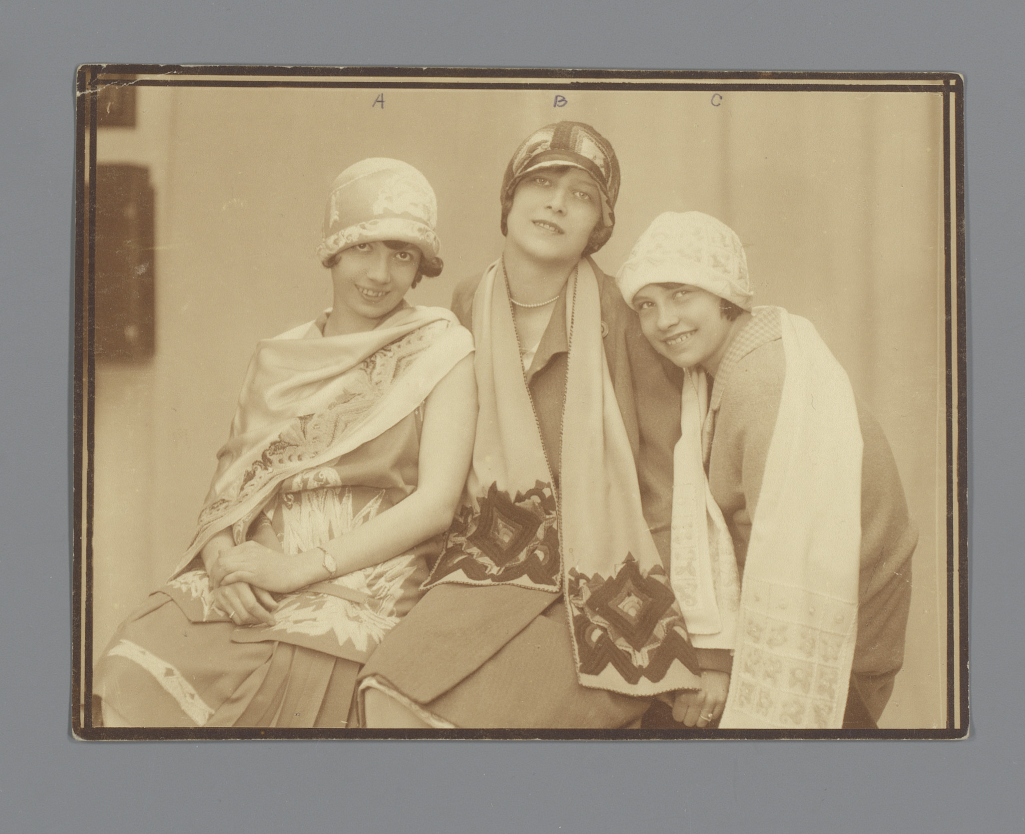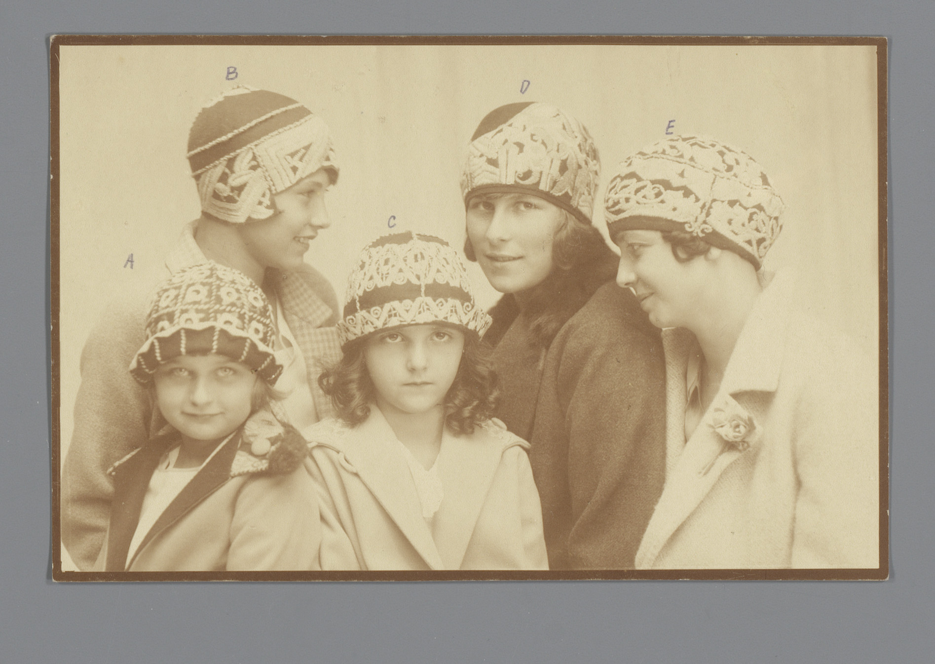 Vijf modellen met geborduurde mutsen van de Wiener W...