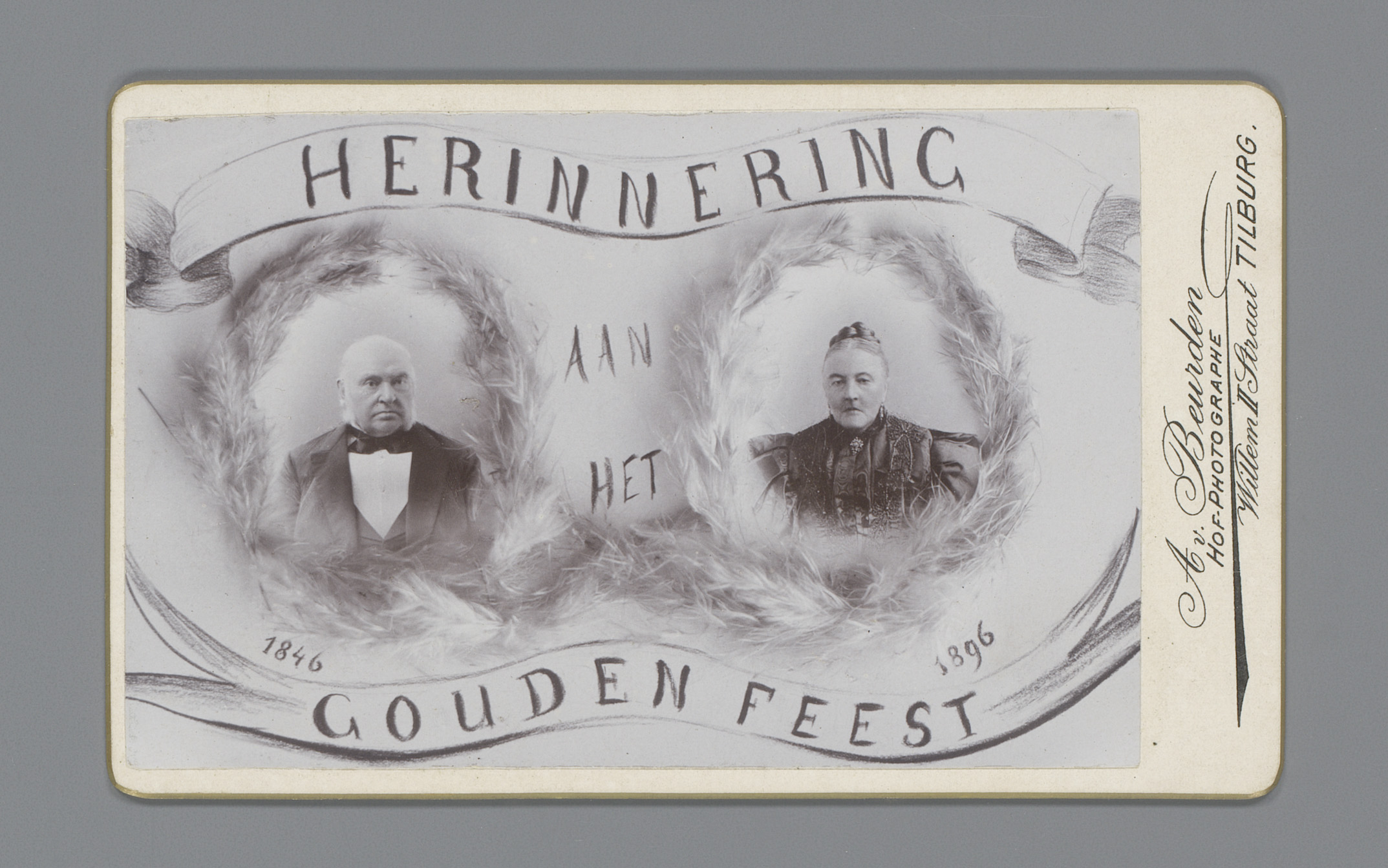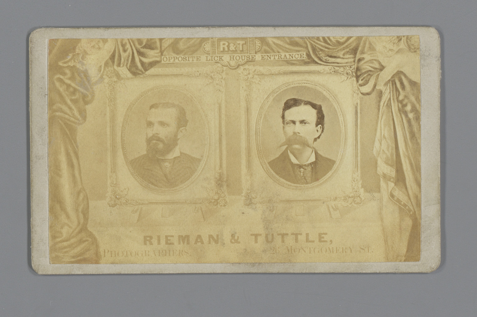 Fotoreproductie van een visitekaartje met portretten...