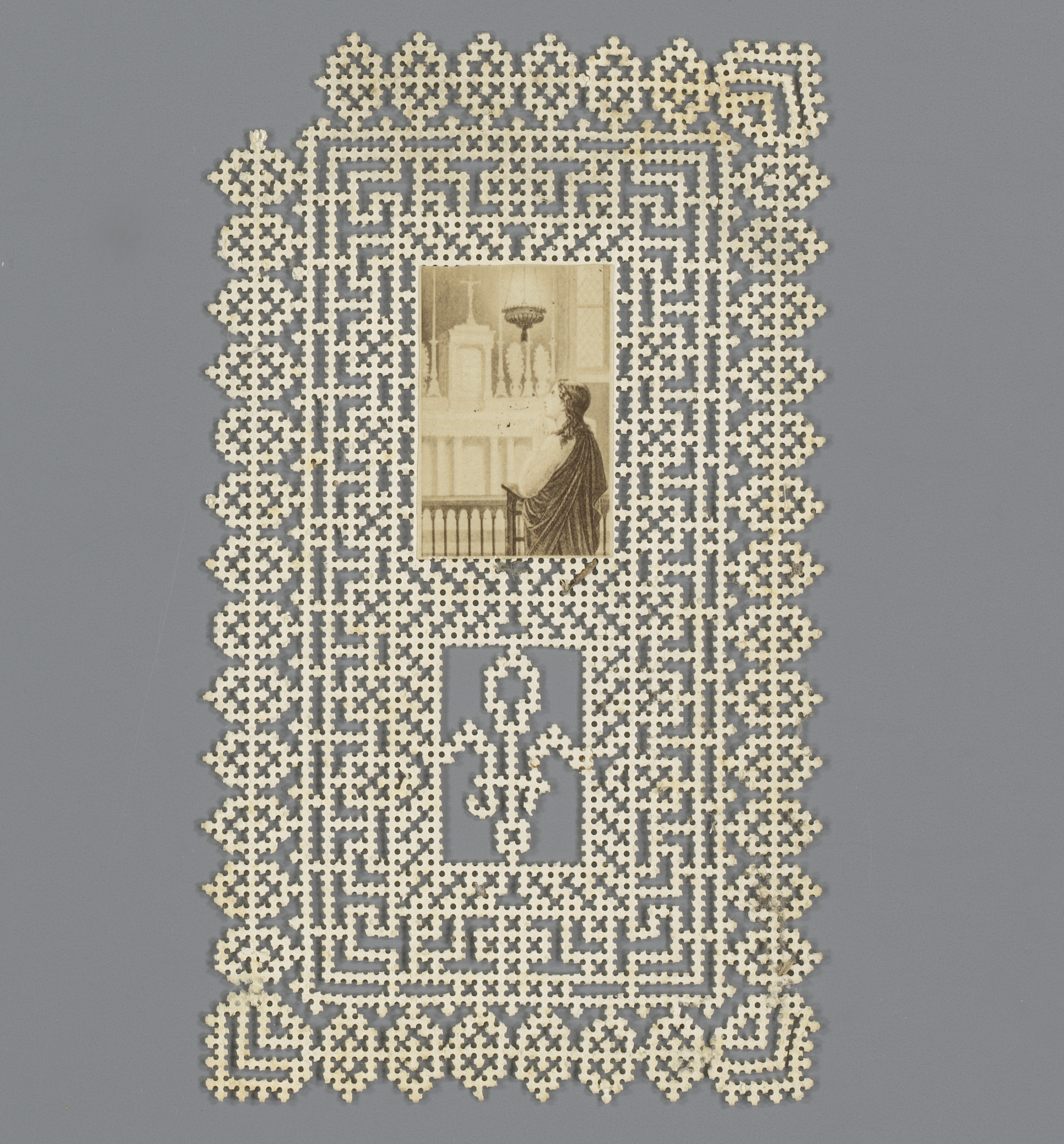 Fotoreproductie van een schilderij, communicant knie...