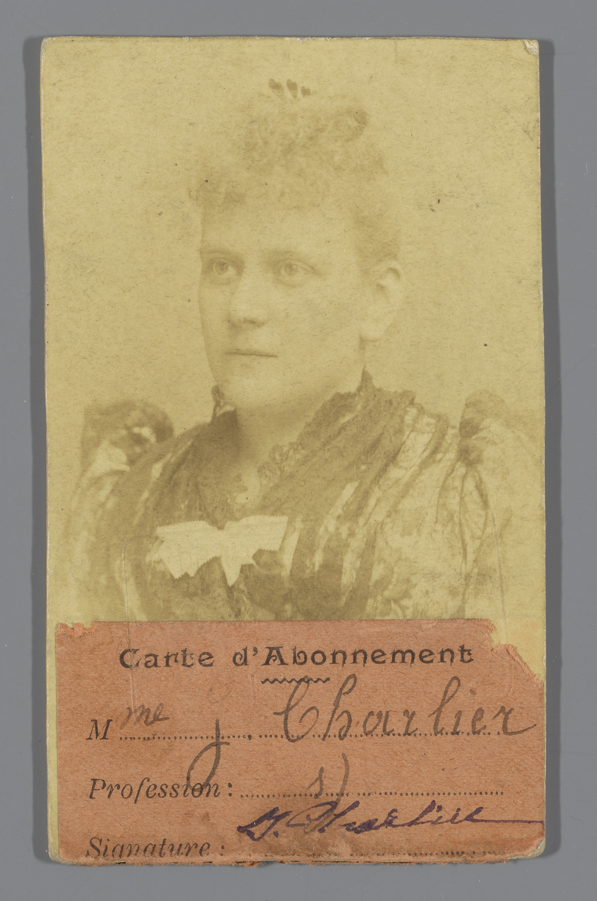 Portret van mevrouw J. Charlier voor abonnement tijd...