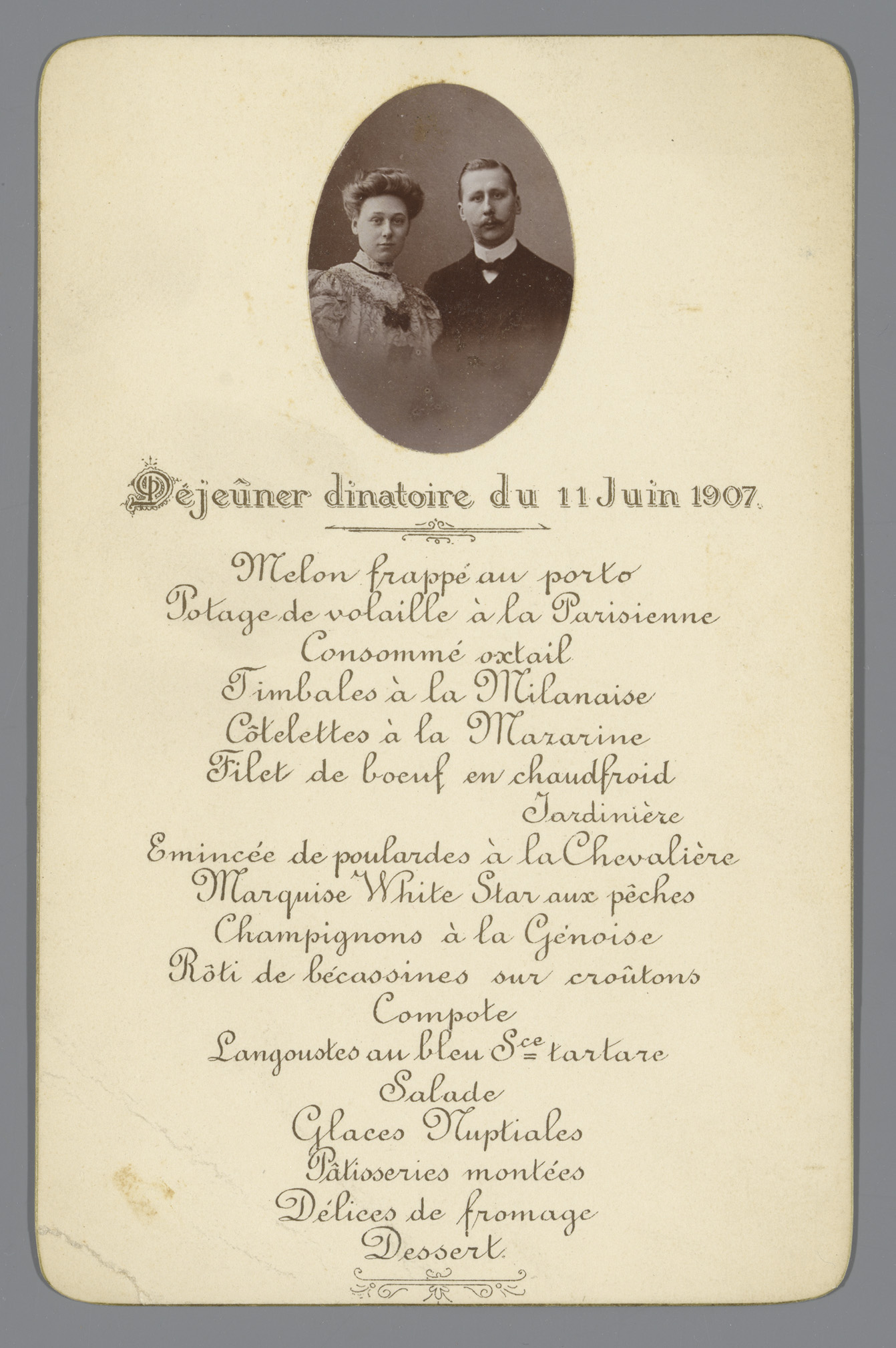 Menukaart van de bruid voor het diner ter ere van he...