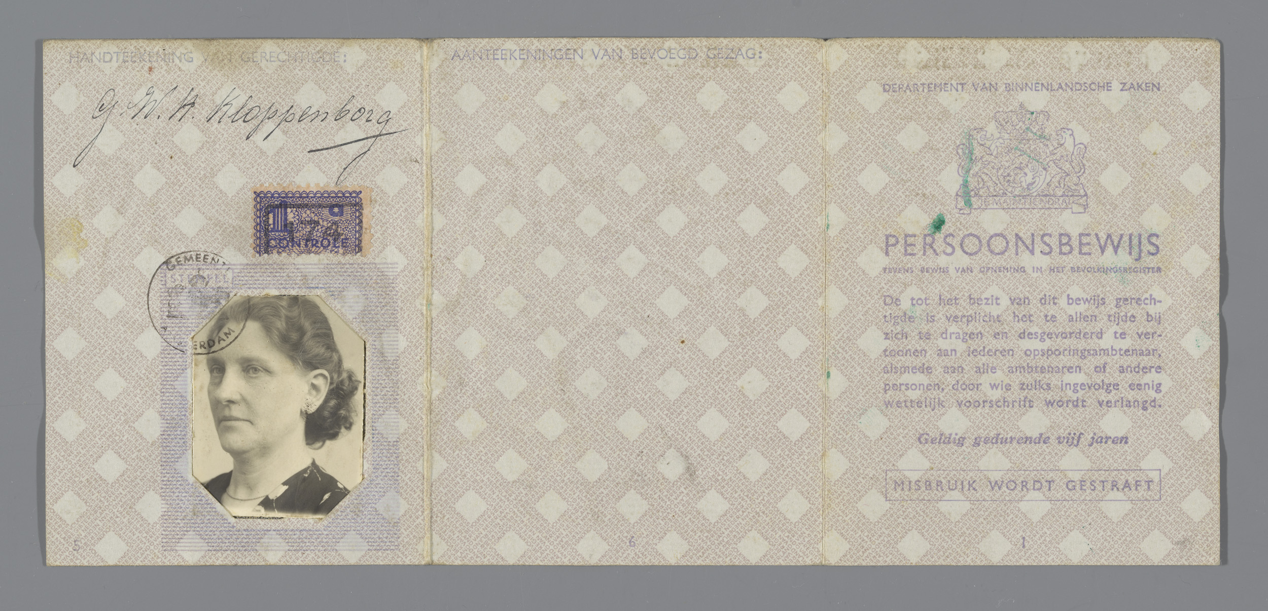 Persoonsbewijs van Gijsbertje Willemina H. Kloppenbu...