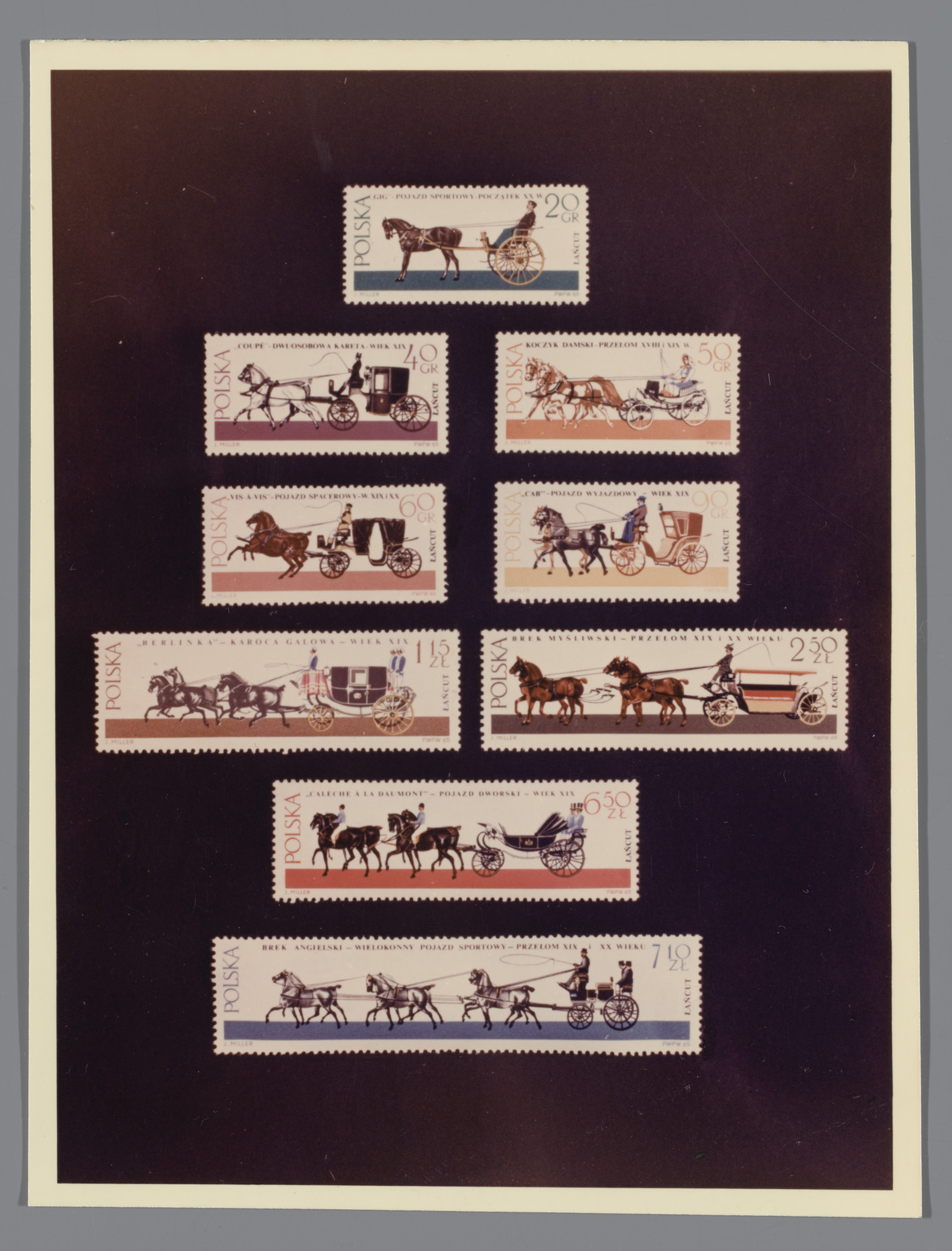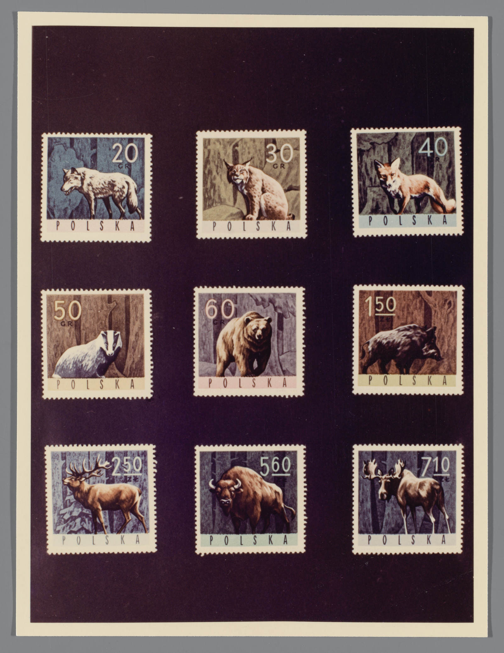 Fotoreproductie van negen postzegels uit Polen met a...