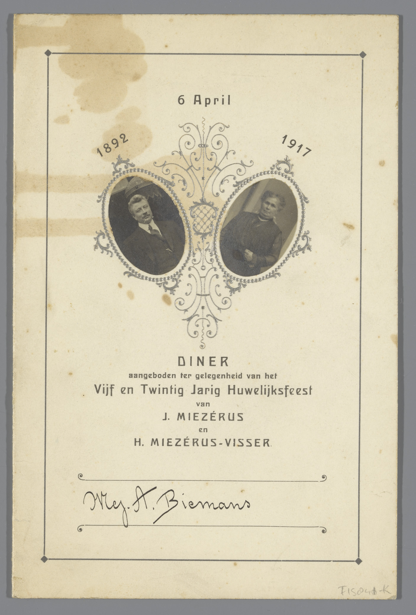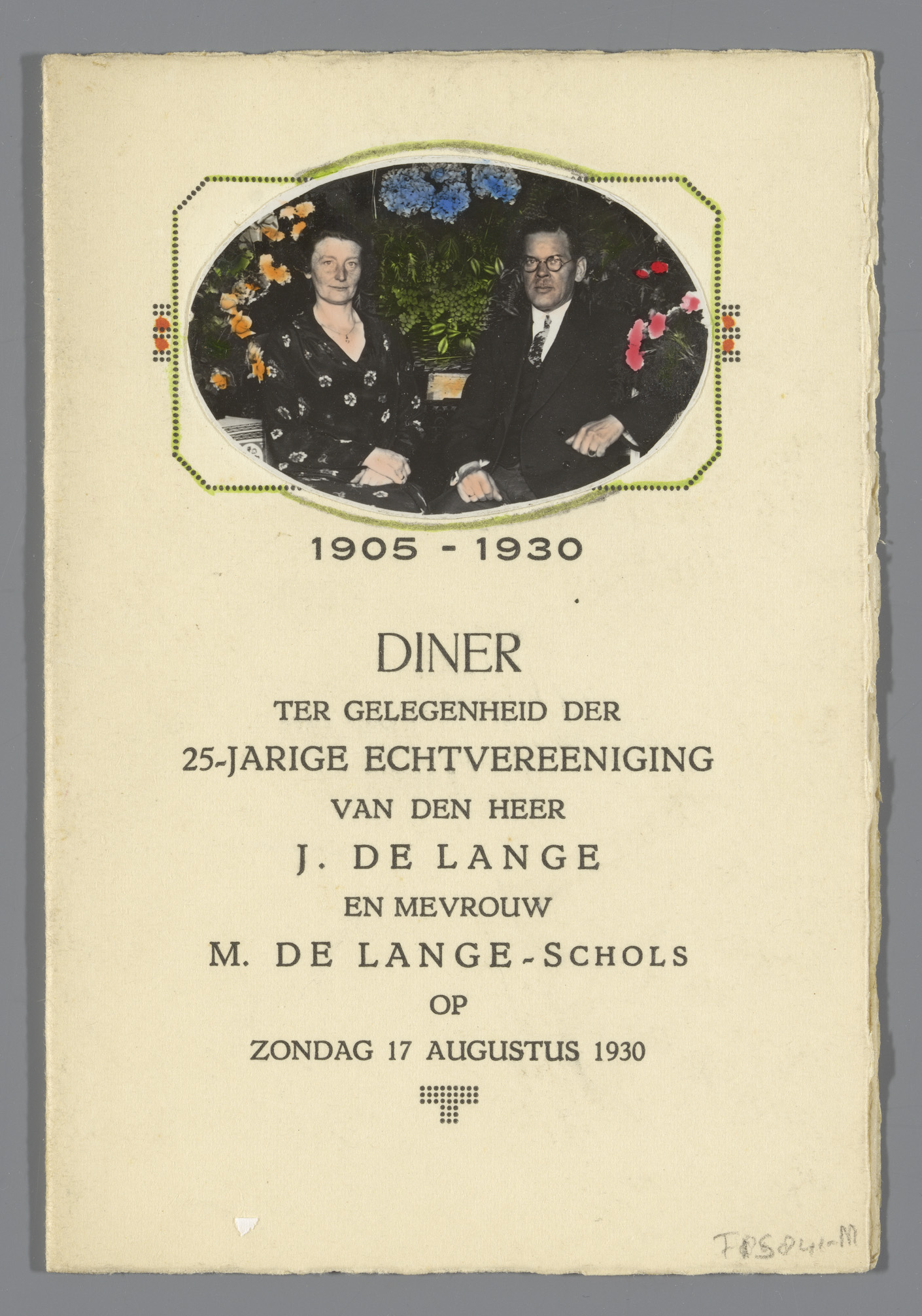 Menukaart voor diner ter ere van een 25-jarig huweli...