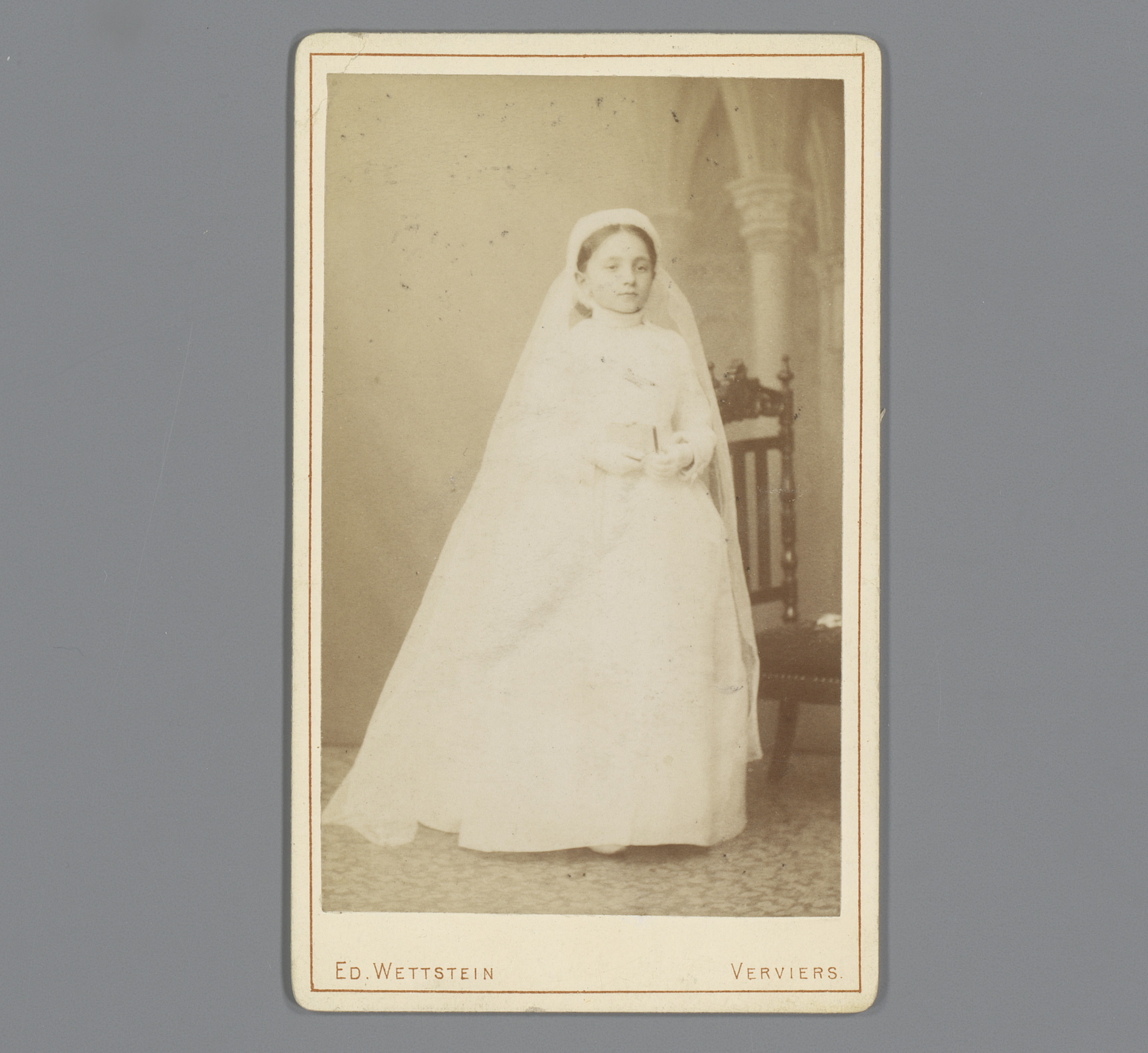 Portret van een onbekend meisje bij haar eerste comm...