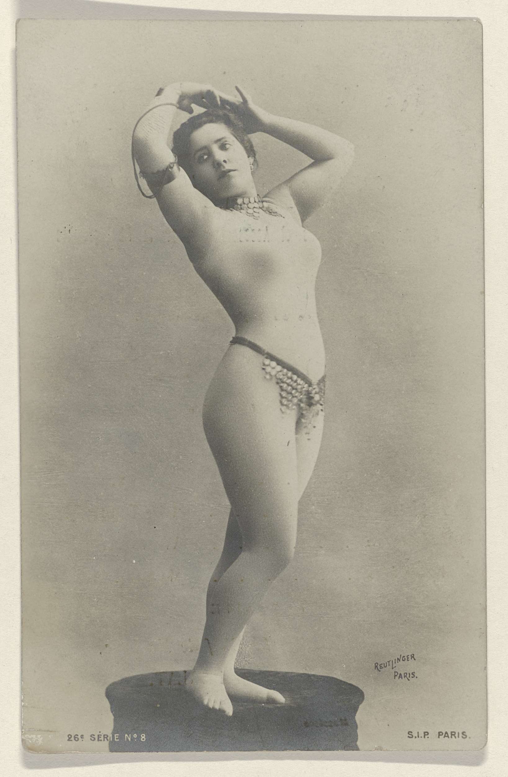 Portret van een schaars geklede onbekende danseres o...