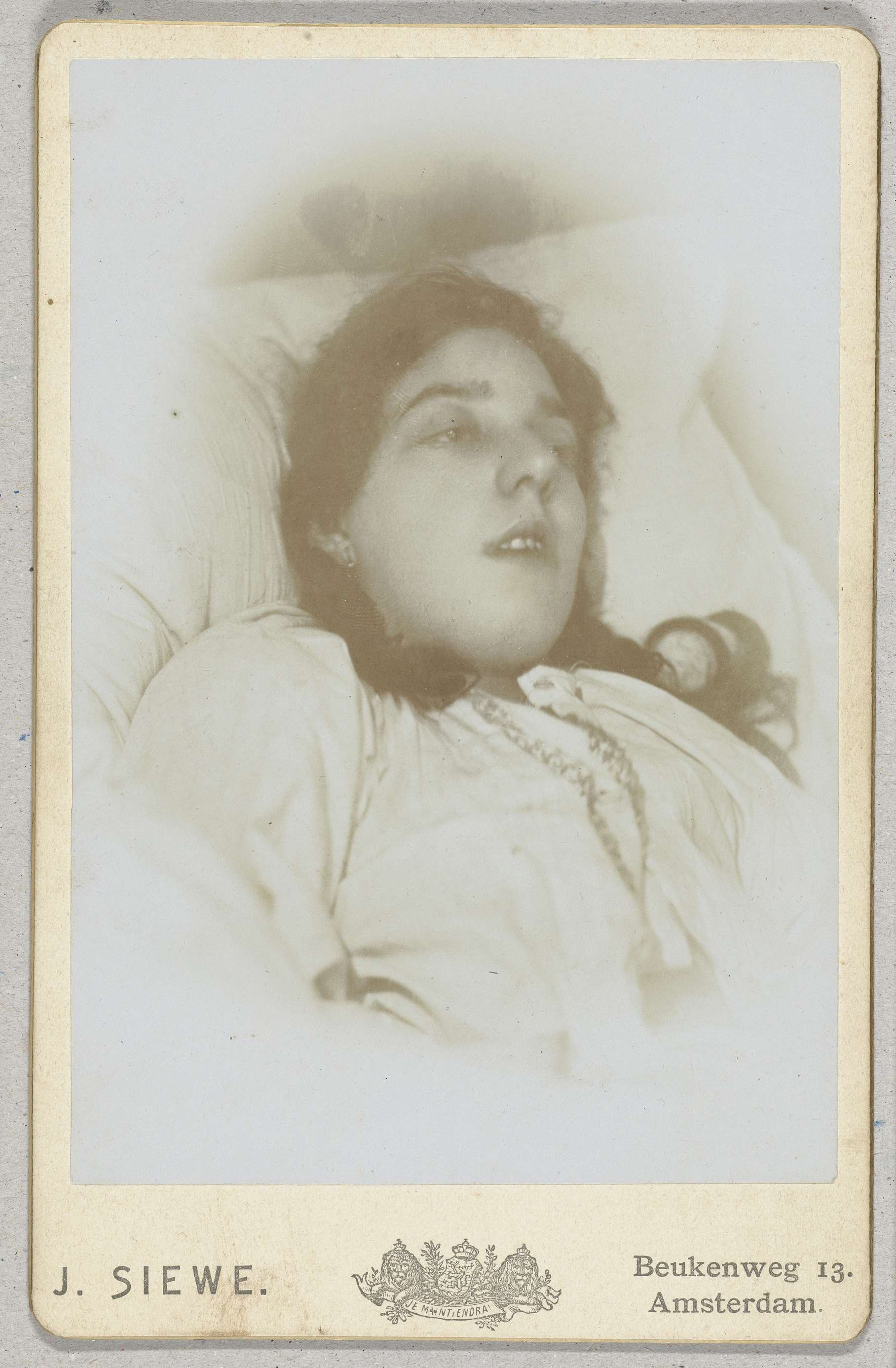 Post-mortemportret van een vrouw met geopende ogen