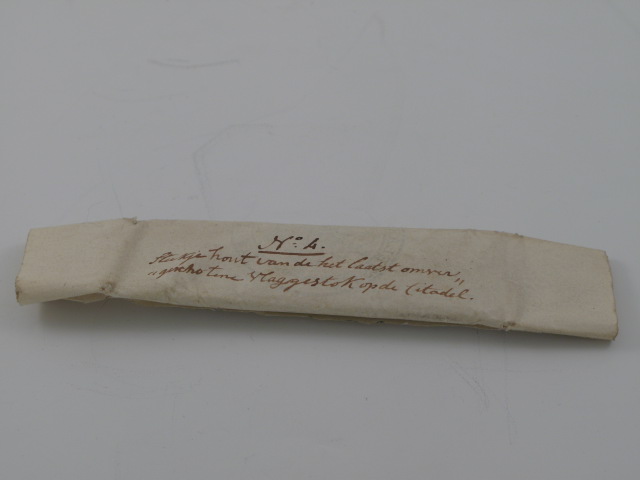 Beschreven gevouwen stukje papier waarin stukje hout...