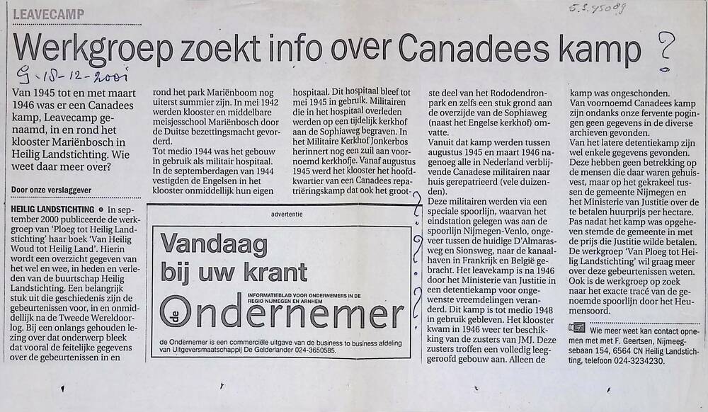 Thuis, Vel uit Het Parool met lijst van teruggekeerd...