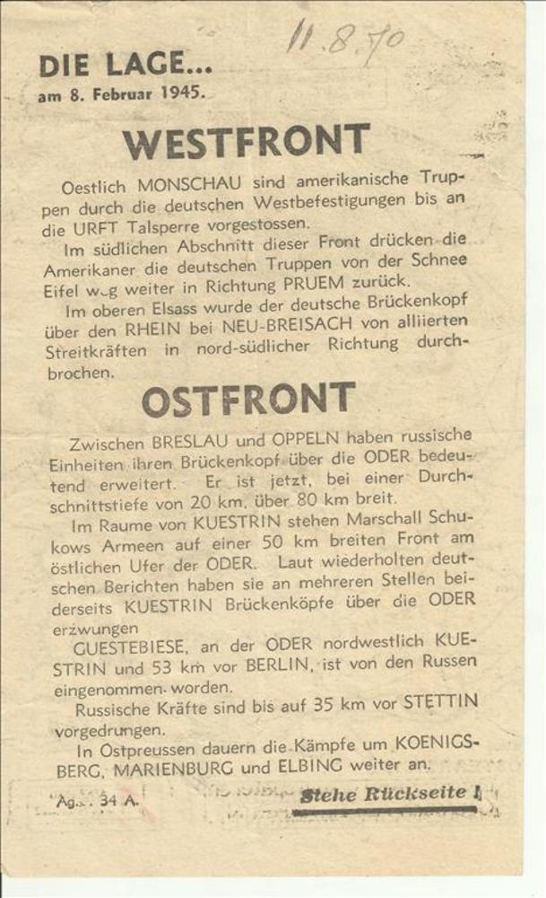 Voorbeeld formulier sterktelijst, 1 februari 1945