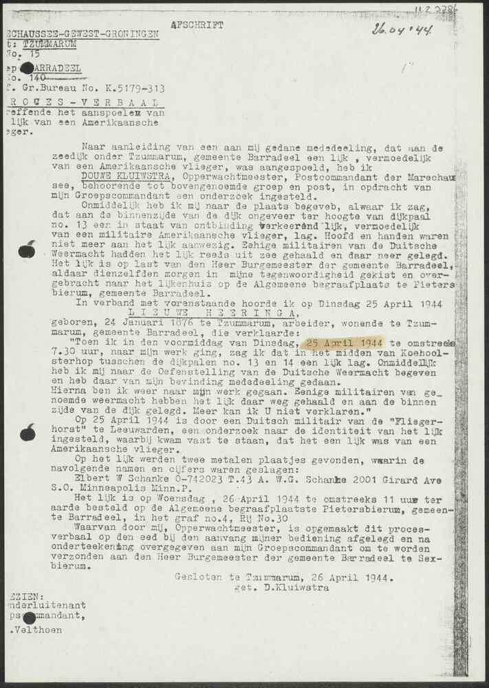 Rapport van de herkenningskenmerken van de gesneuvel...
