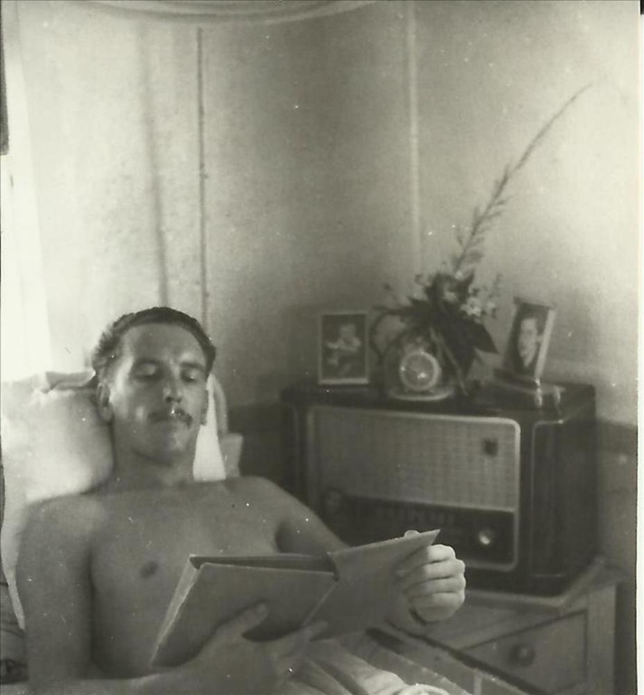 Nieuw-Guinea; marineman, rustig hoekje, boek, radio,...