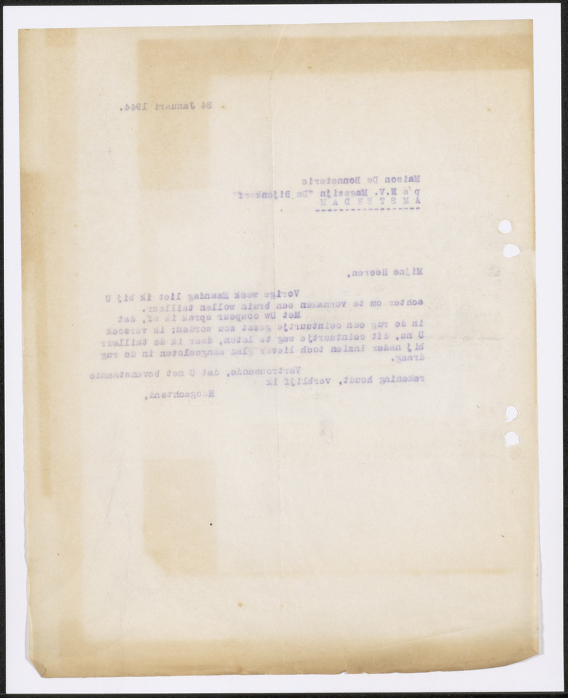 Afschrift Brief 24 januari 1944 aan Maison de Bonnet...