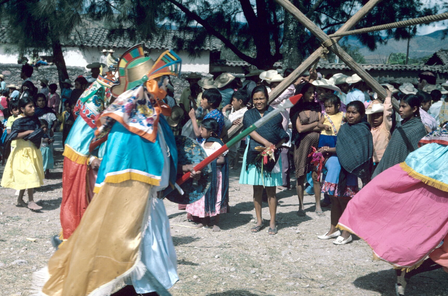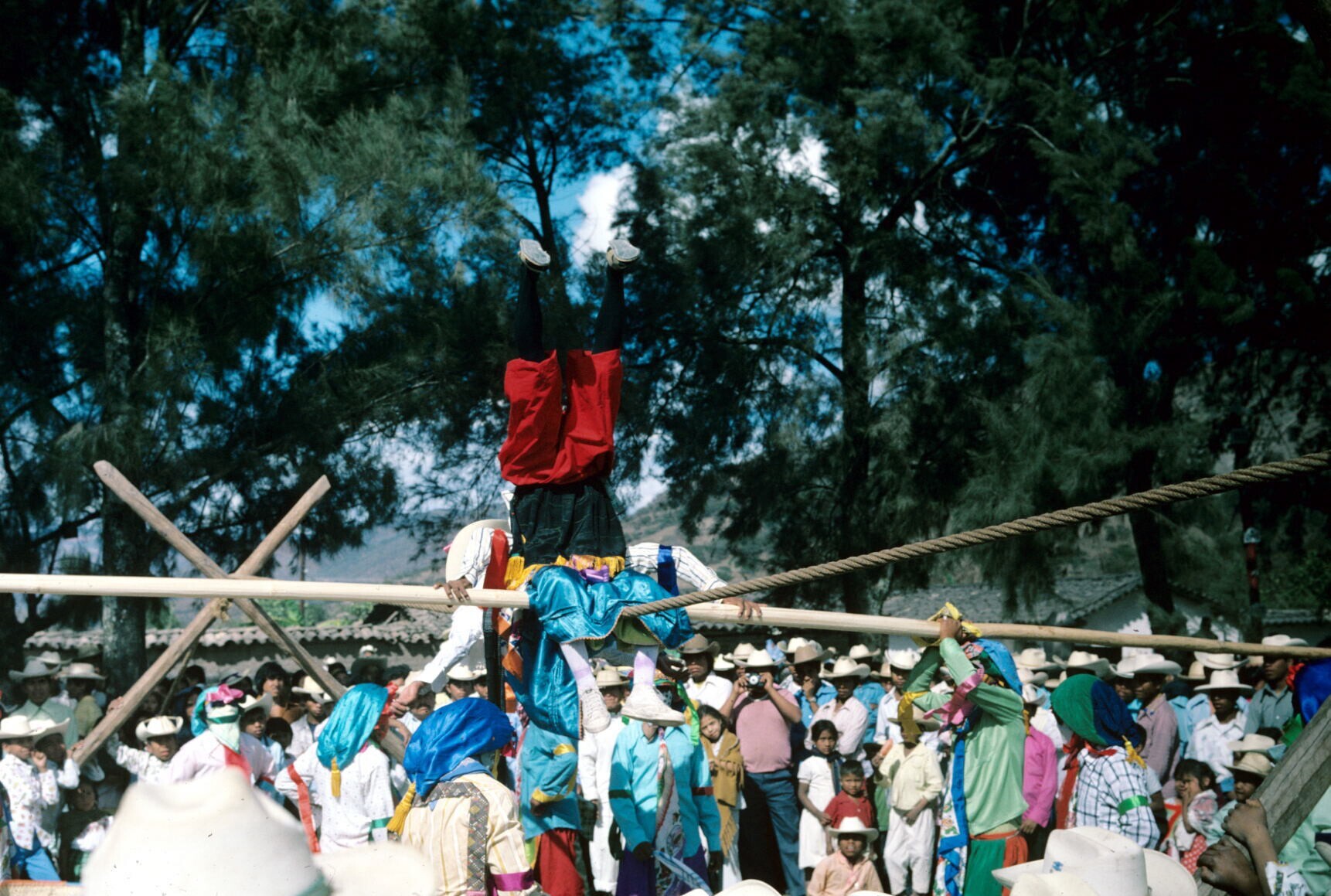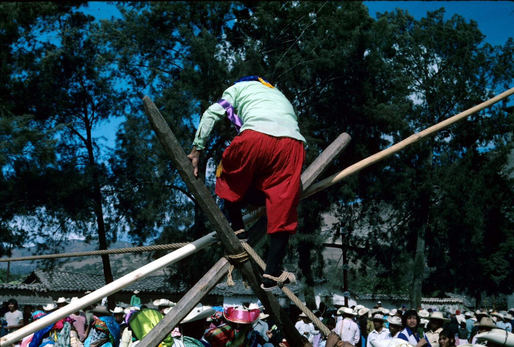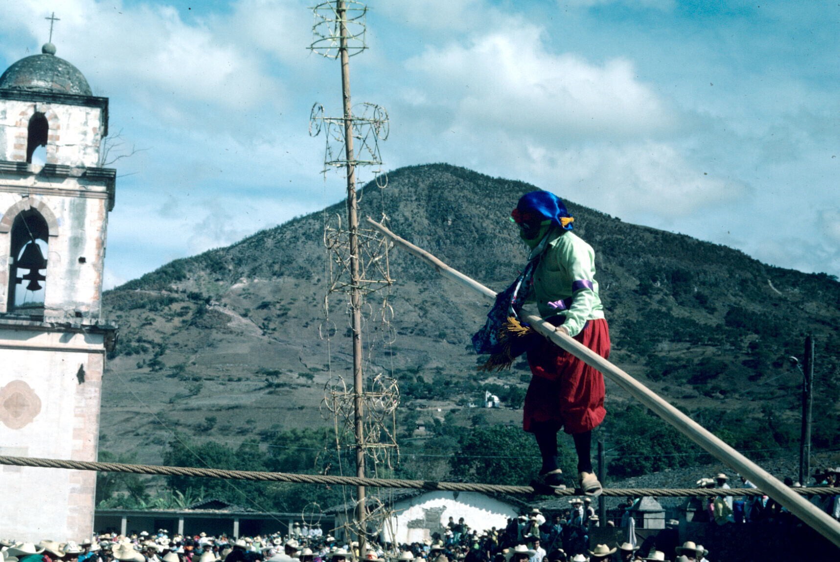 'maromero' (koorddanser) in actie; op achtergrond vu...