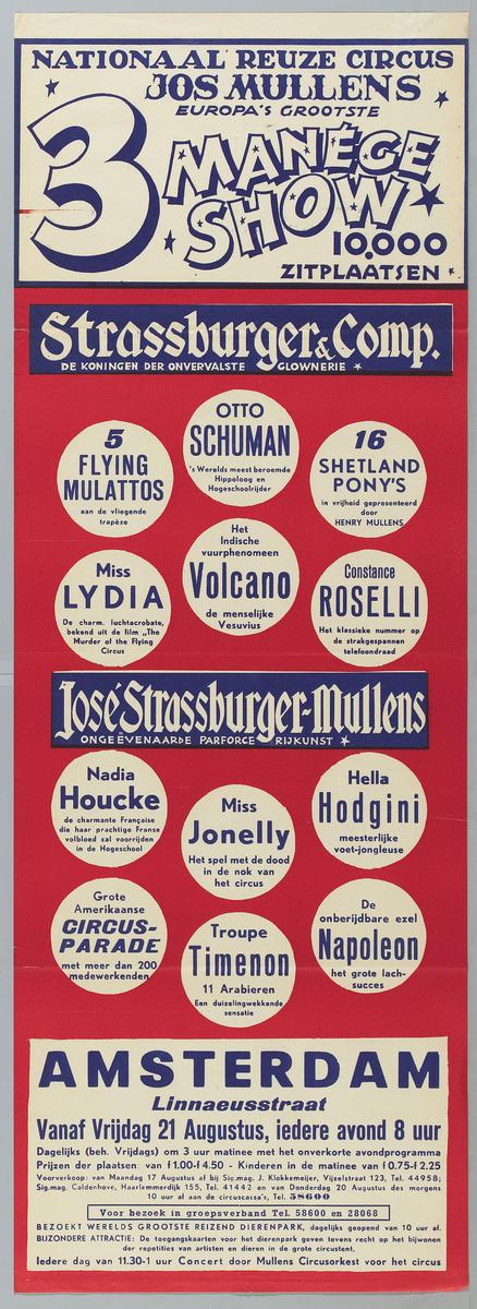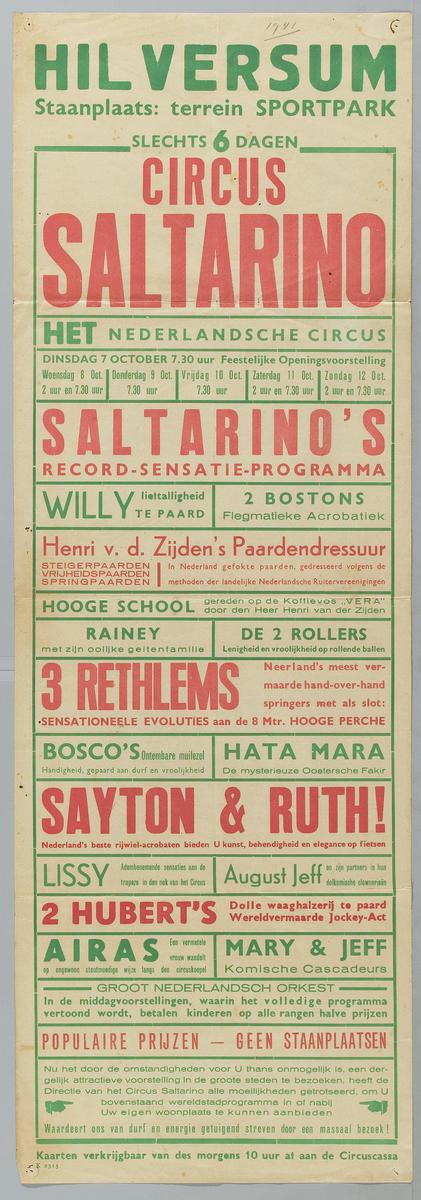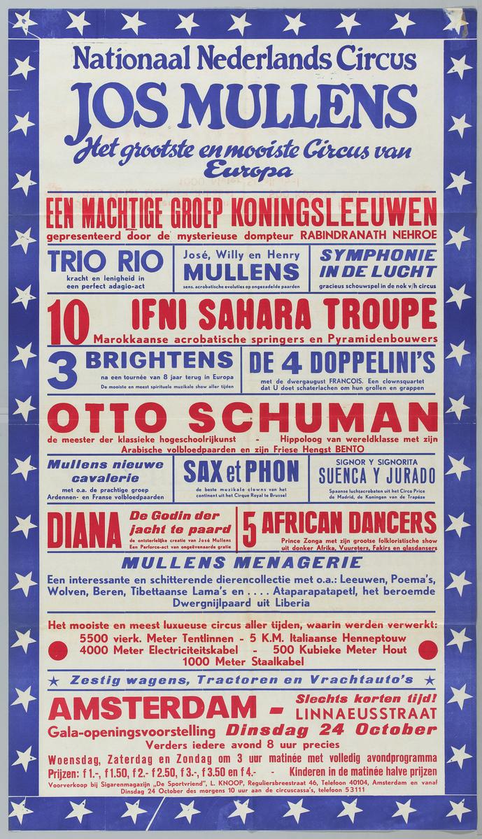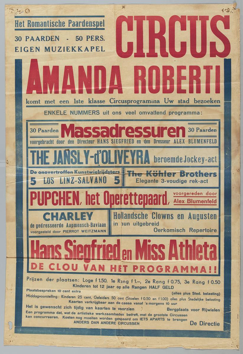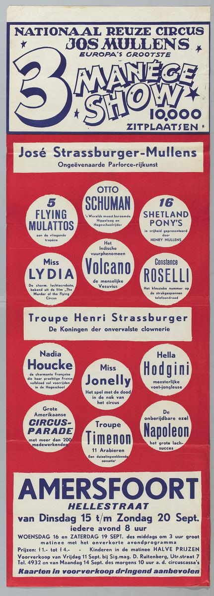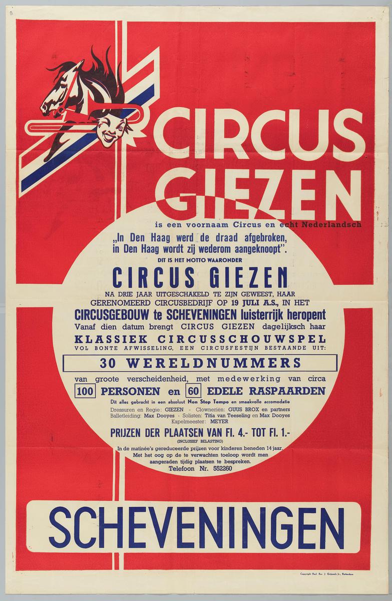 Tekst: "Het Nederlandsche Circus Rens Tent-Circus in...