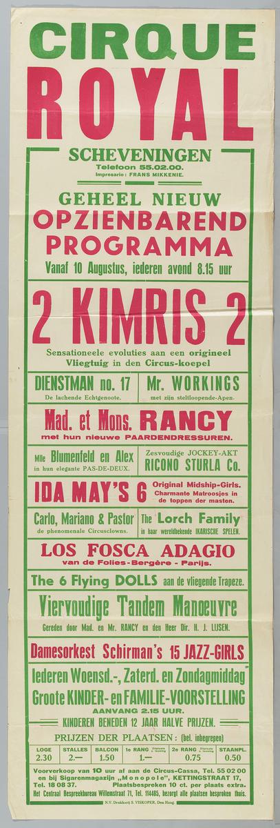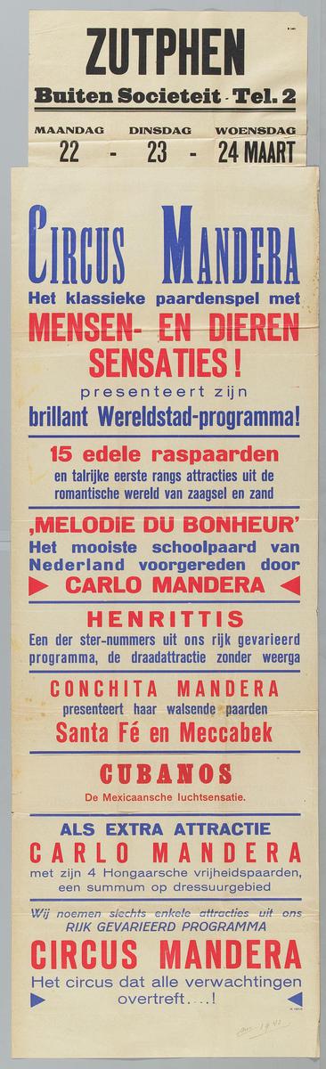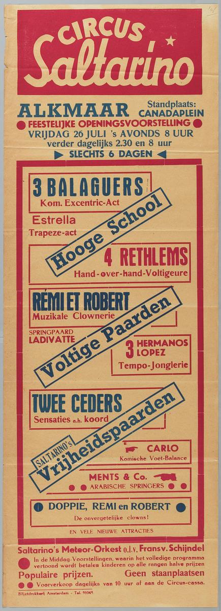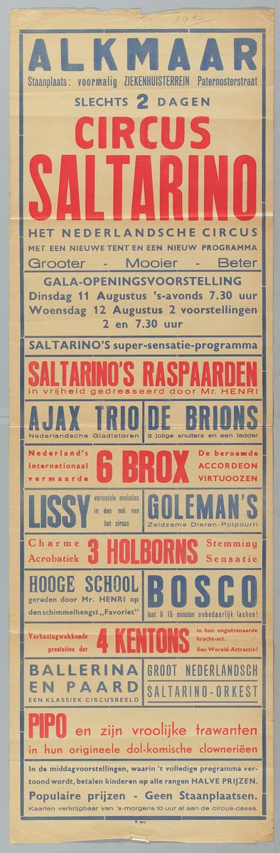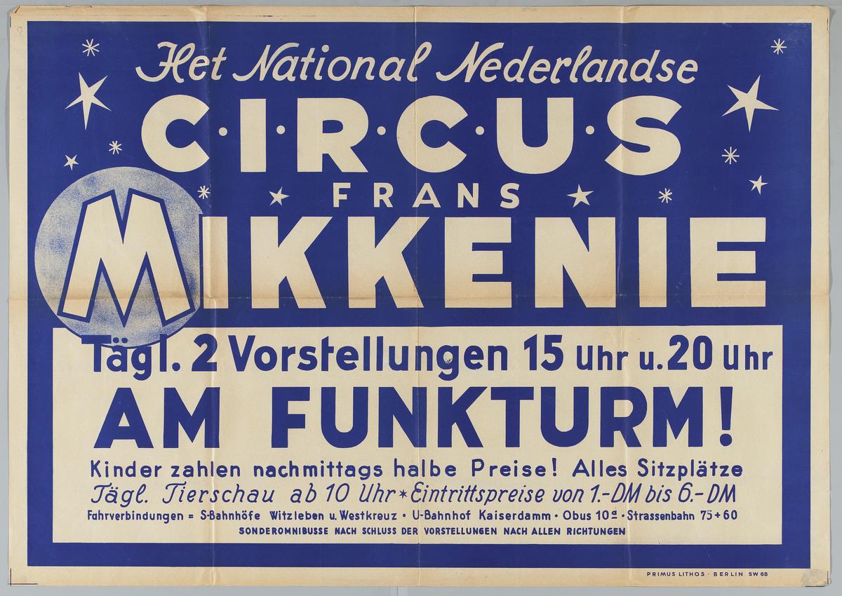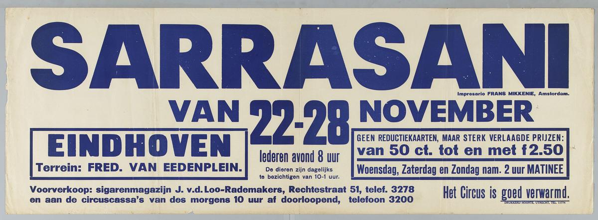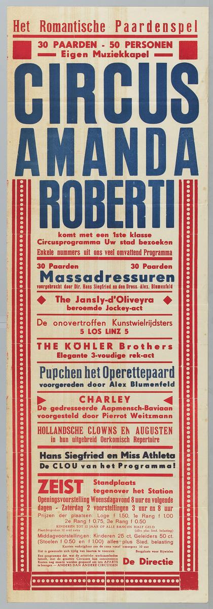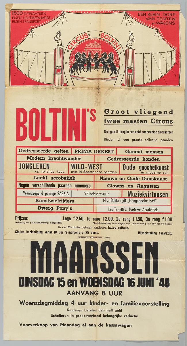 Tekst: "Het Nederlandsche Circus Rens Tent-Circus in...