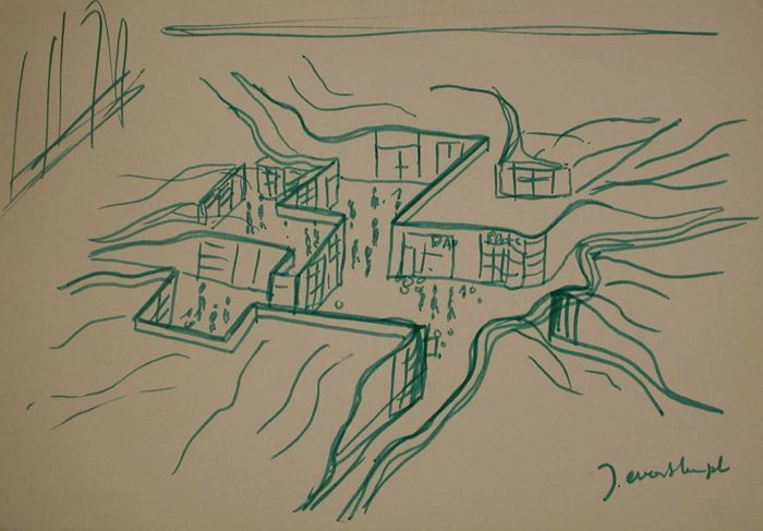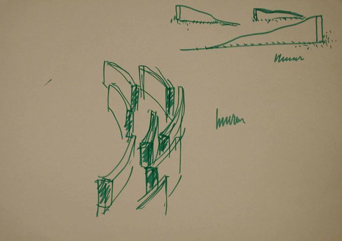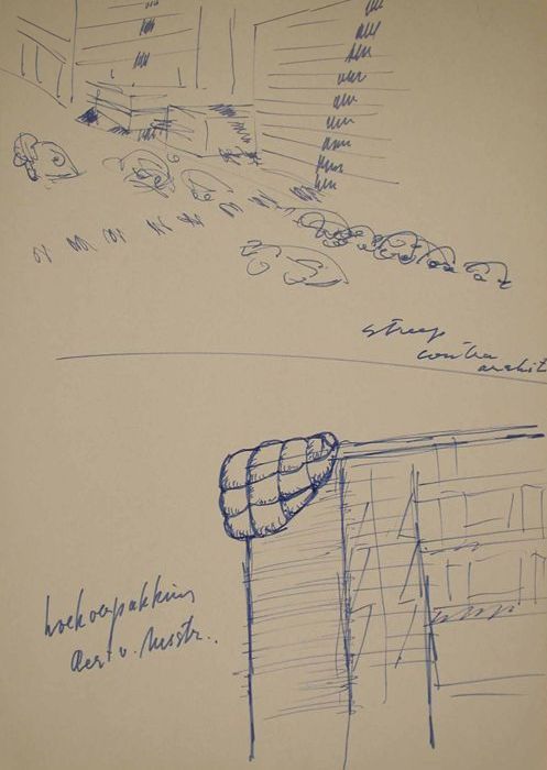 Schetsboektekening met ontwerp voor openbare ruimte,...