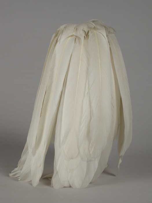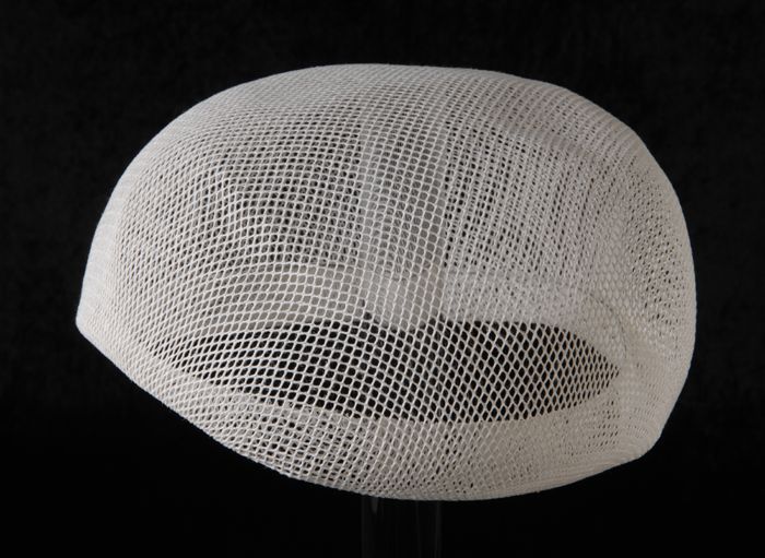 Basisvorm voor een hoed van tule raide (?), naar bin...