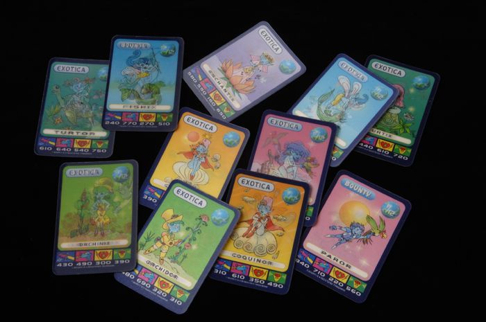 Elf "Spacix" "Exotica" verzamelkaartjes van Bounty, ...