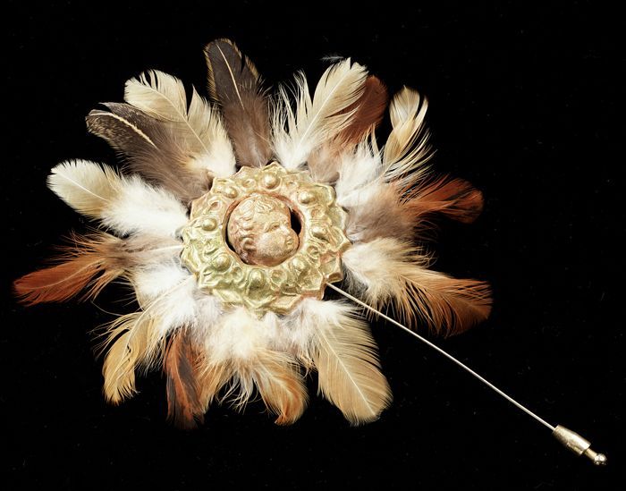 Hoedendecoratie, verendecoratie, kleine halve bol be...