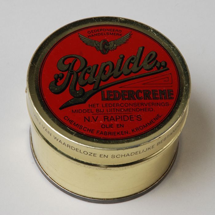 Klein rond blik met los deksel, "Rapide, ledercrème"...