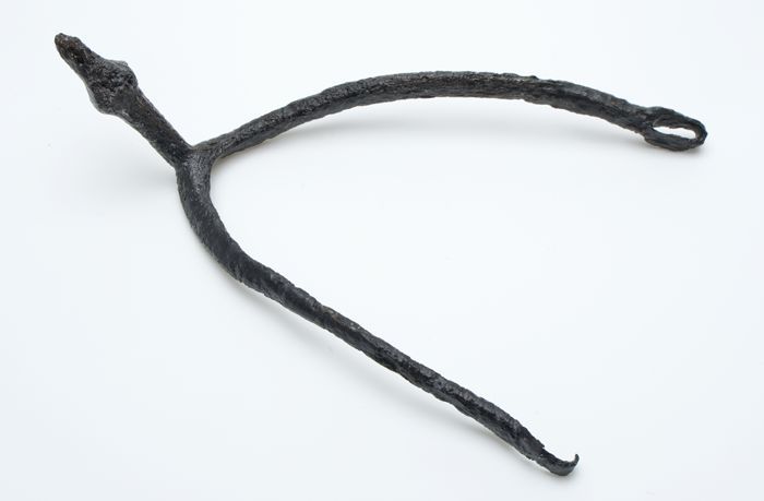 Hoedenspeld, lange metalen pen met scherpe punt, bol...