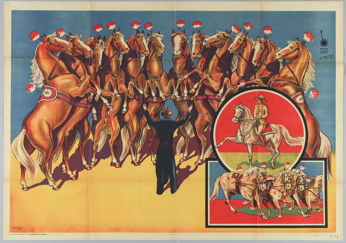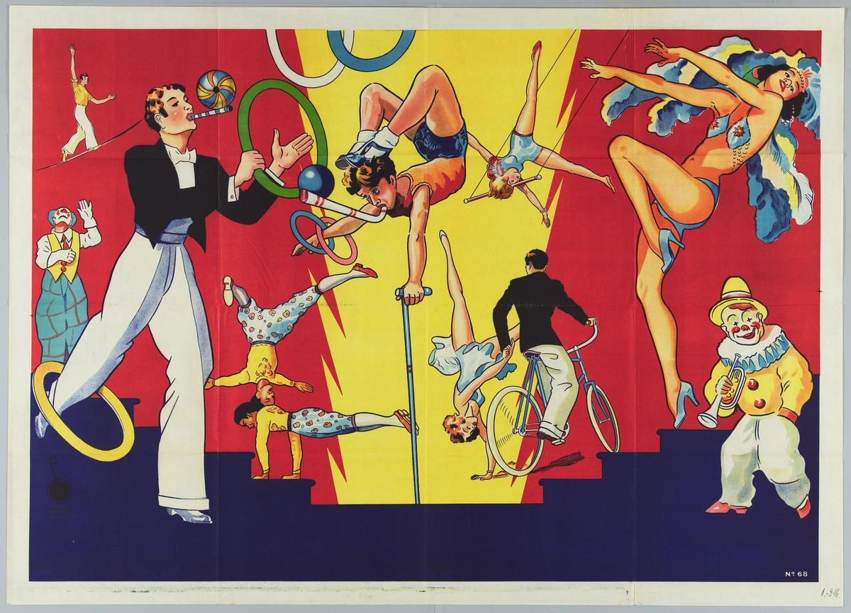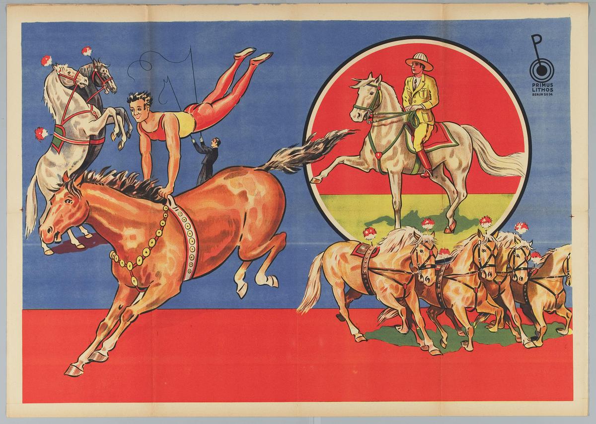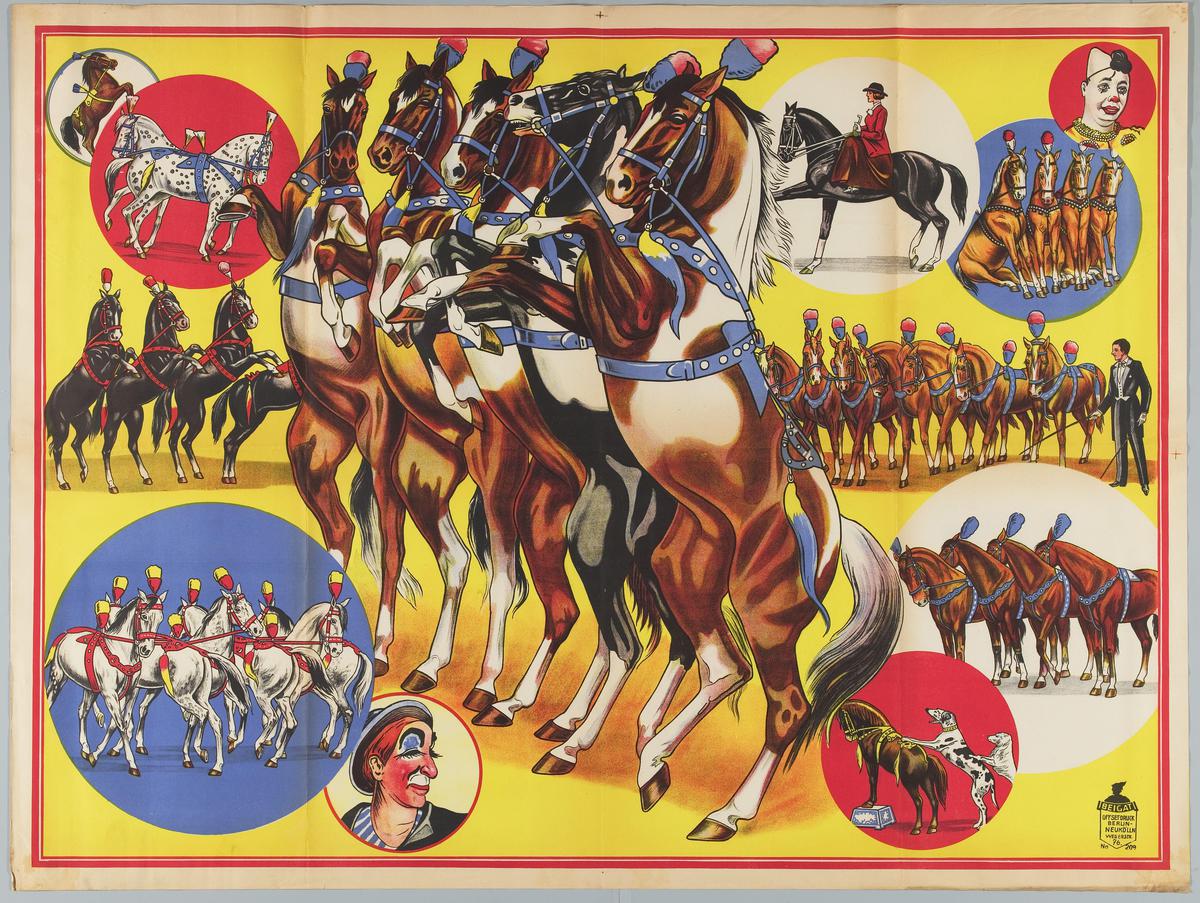 Piste met o.a. paarden, clown, trapeze