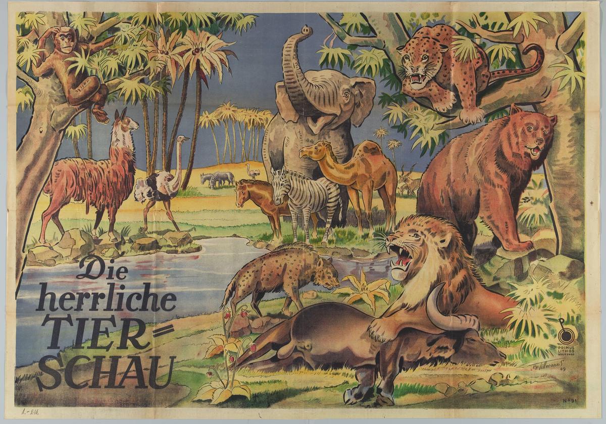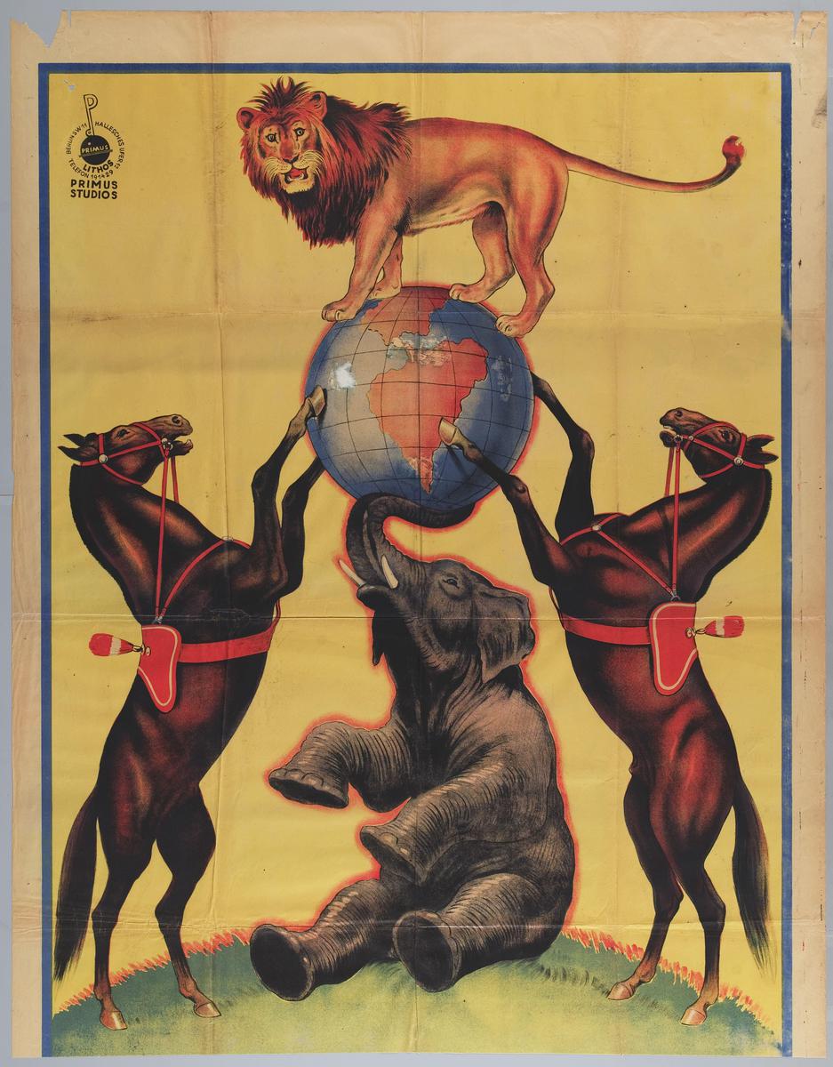 Paarden, leeuw en olifant