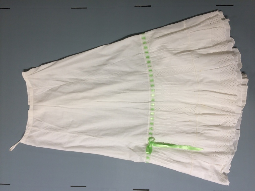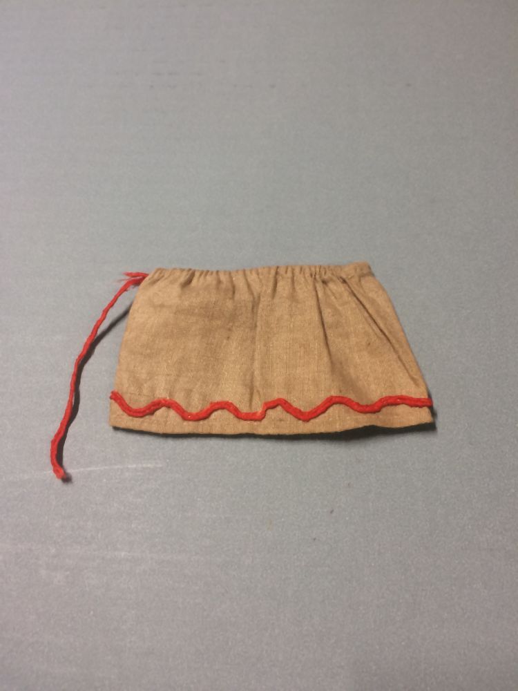 Onderrok van beige linnen met rood biesje, uit doosj...