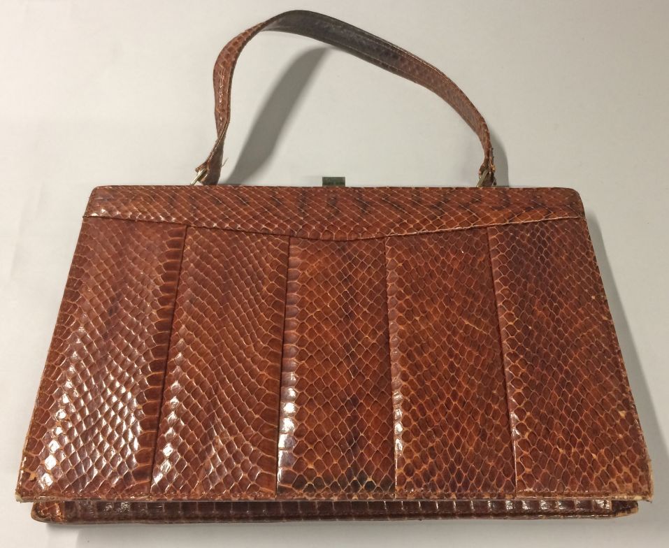 Rechthoekige bruine gelakte slangenleren handtas, ge...