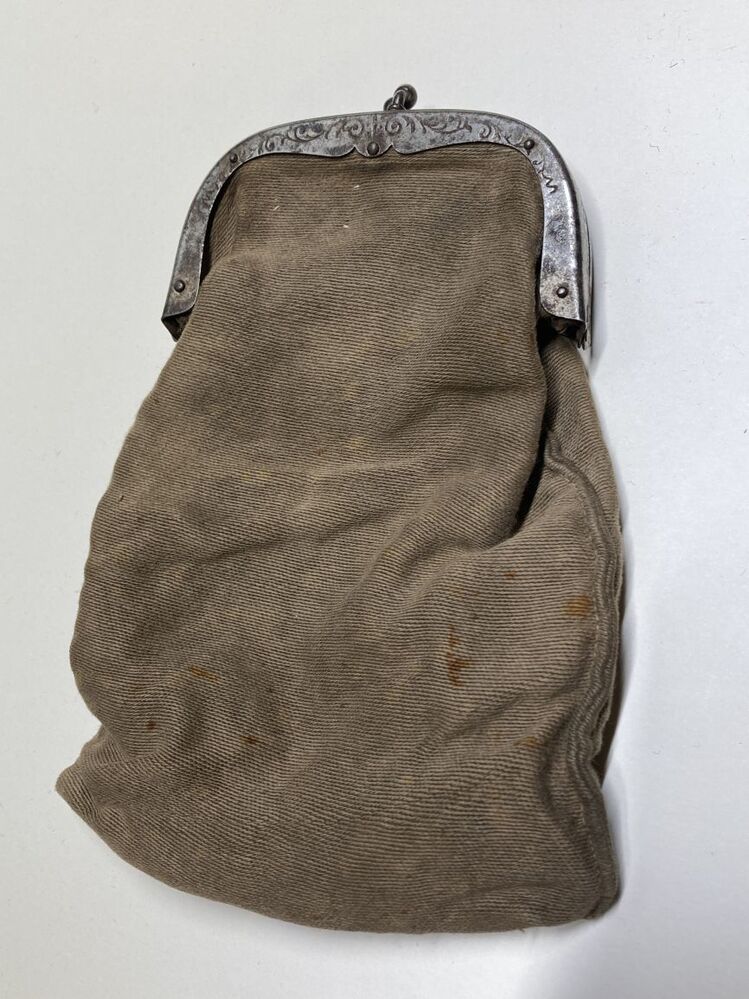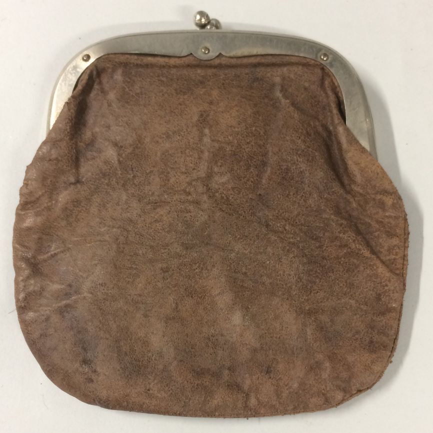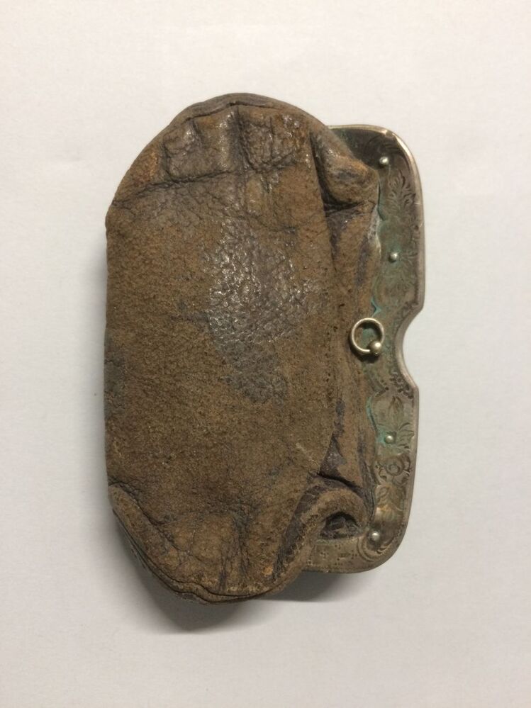 Leren beursje met gegraveerde knipbeugel van zilver