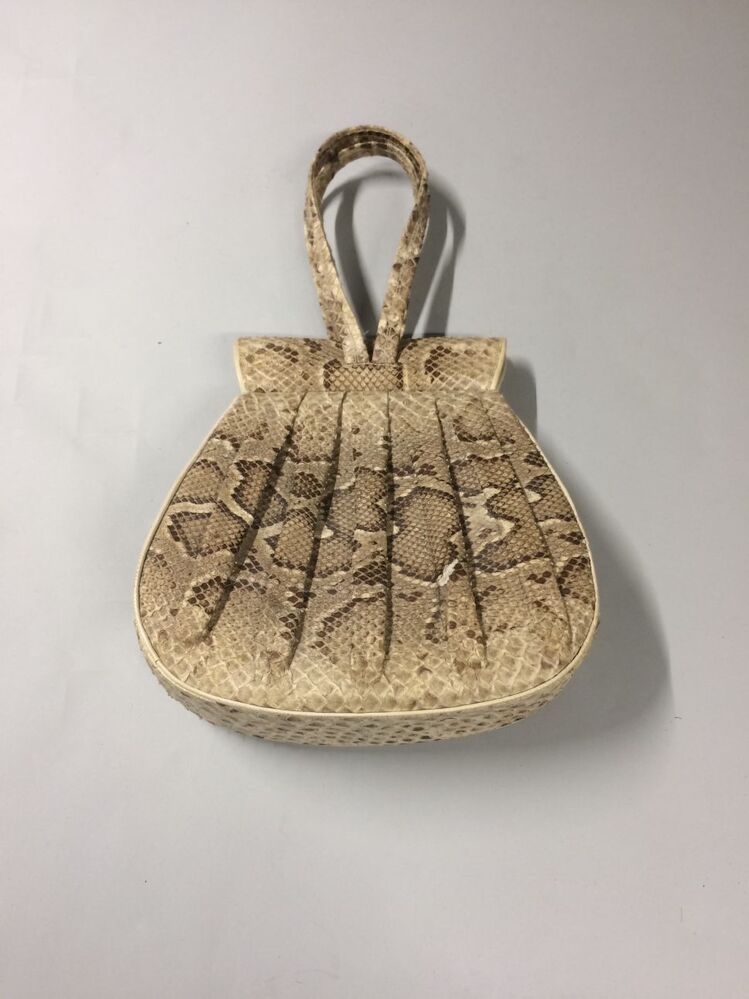 Beige-bruine geplooide slangenleren handtas met verb...